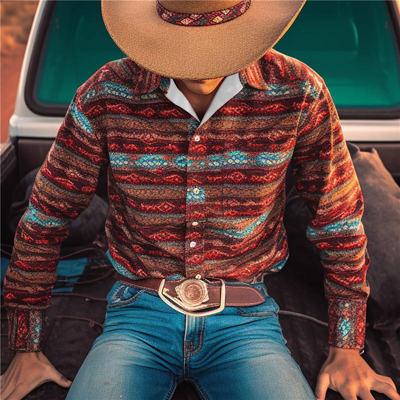 Men's Tribal Graphic Prints Vintage Shirt Western Shirt Cowboy Shirt Long Sleeve Fashion Streetwear Designer Outdoor Daily Fall Winter Turndown Print Button-Down Blue
