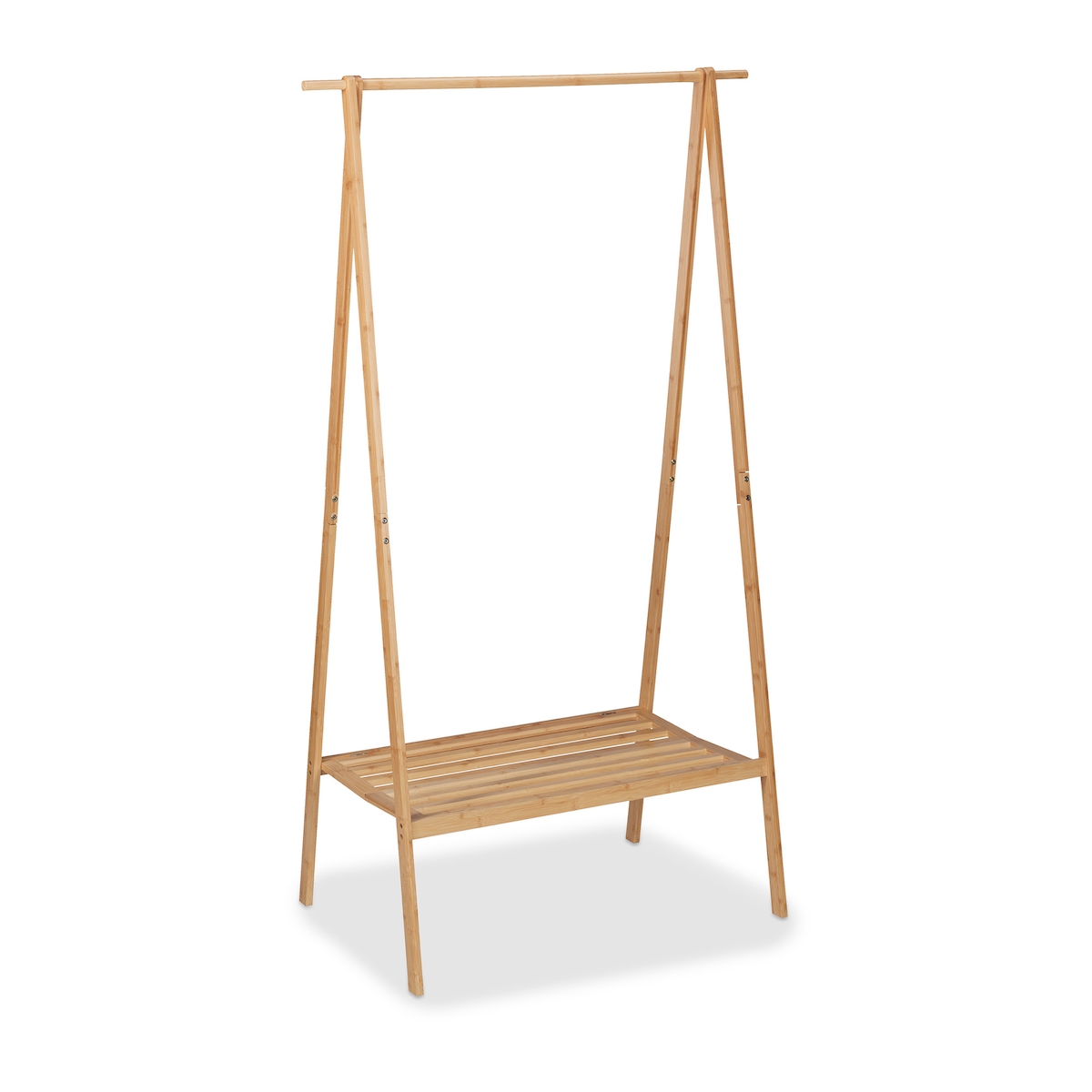 Relaxdays Kleiderständer Bambus, klappbarer Garderobenständer, HBT: 170 x 100 x 56,5 cm, Kleiderstange mit Ablage, natur