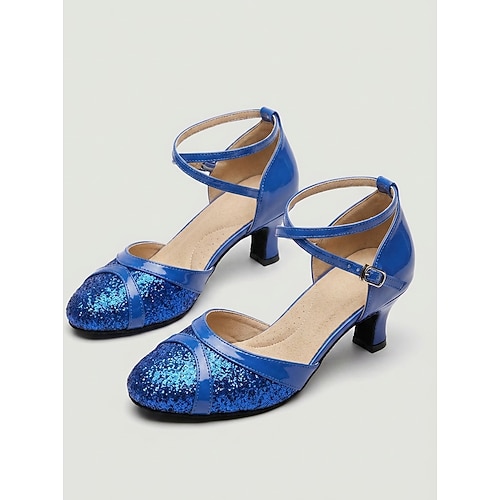Blaue Damen-Balletttanzschuhe – Glitzer, geschlossene Zehenpartie, Latein Standard-Tanzschuhe mit Knöchelriemen