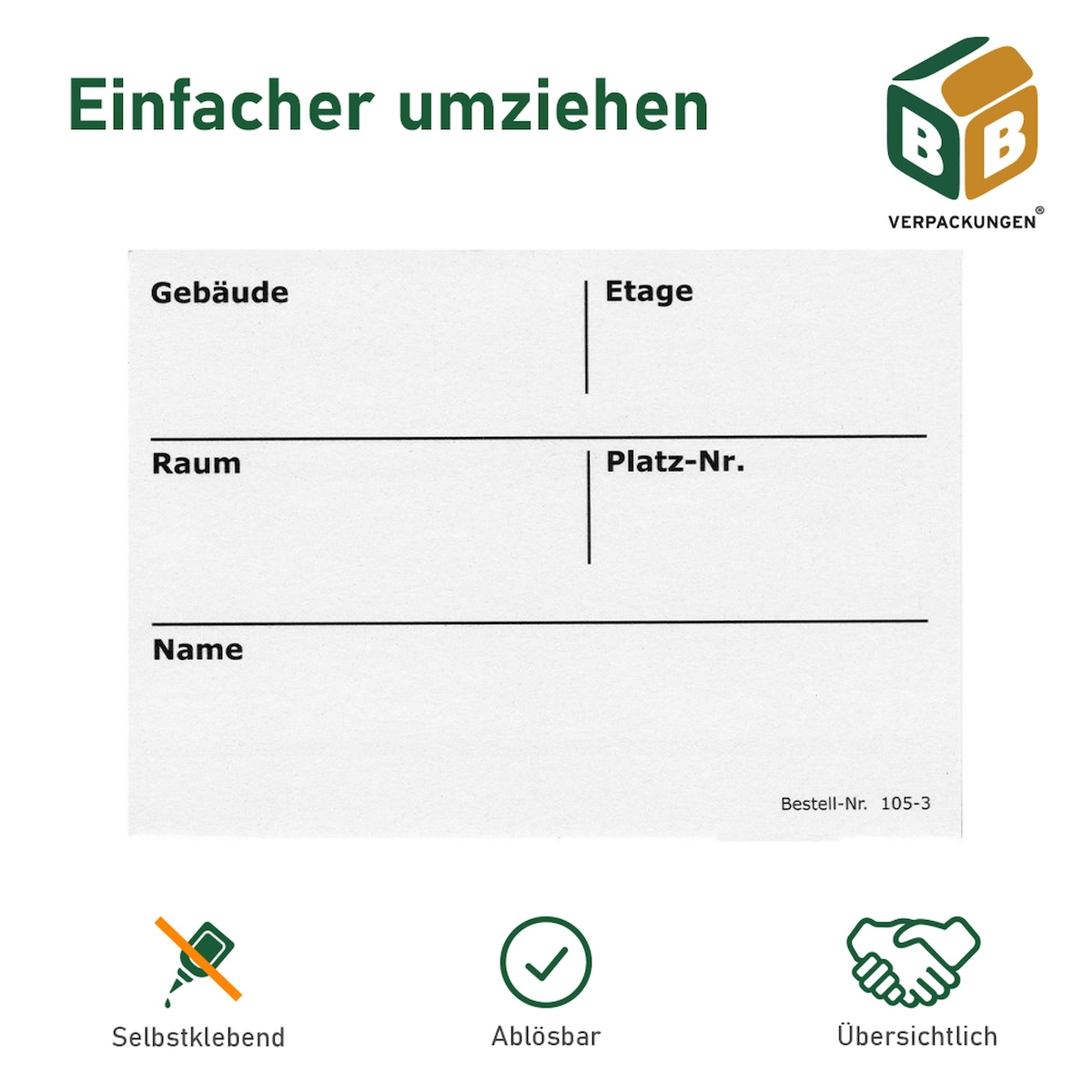 500 x Umzugsetiketten (105 x 75 mm) weiß selbstklebend Rückstandlos ablösbar Kartonaufkleber Sticker Umzugsaufkleber beschriften BB-Verpackungen