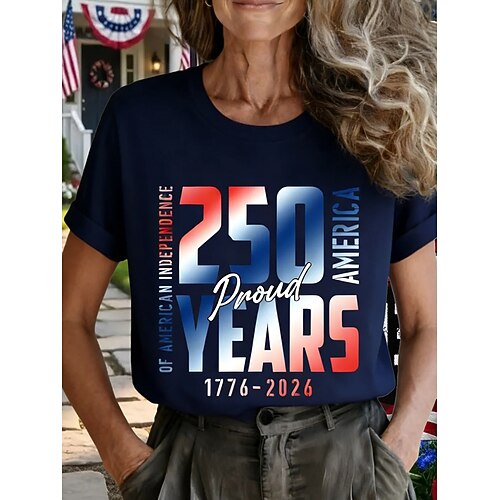 Maglietta Donna Patriottica Americana Festa dell'Indipendenza Stampa Grafica Bandiera Elegante Classica Casual Maniche Corte Girocollo Giro Regolari Tops Quotidiani Blu Marrone Scuro Estate Primavera