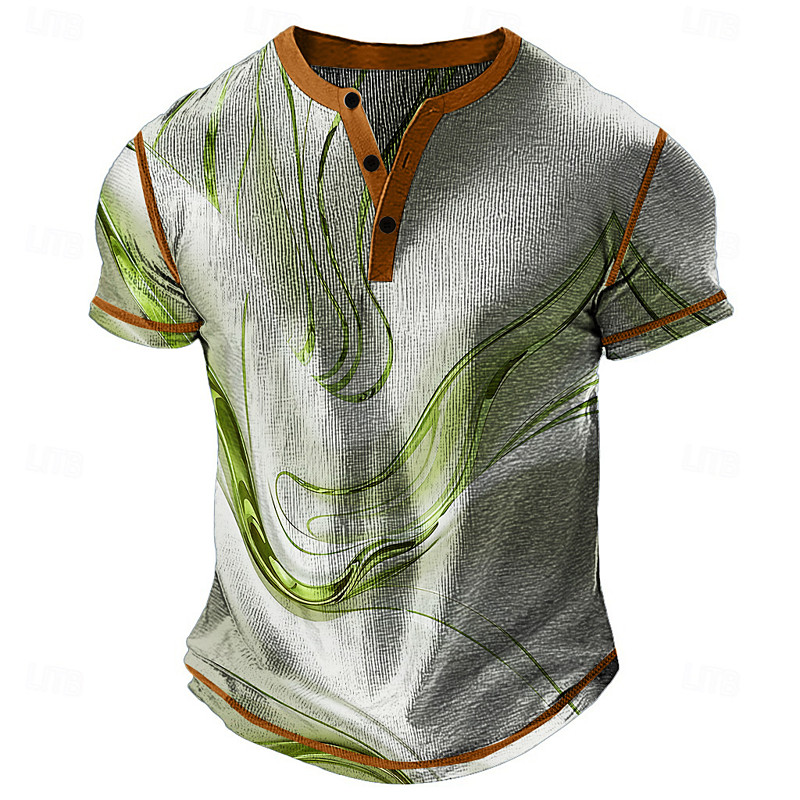 Men's Abstract Geometic Henley Shirt Waffle T Shirt Short Sleeve Daily Retro Vintage Classic Sports Outdoor Casual Holiday Spring Summer All Seasons Lake blue Green Purple Khaki Grey Henley Henley