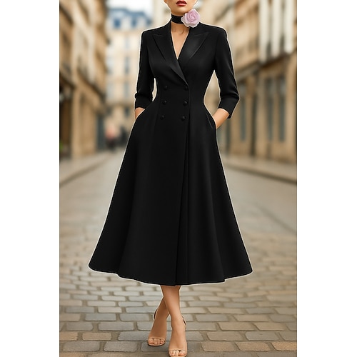 Per donna Abito da smoking Linea ad A Matrimonio Formale Ospite di nozze Raso Tessuto elasticizzato a 4 vie Elegante Frac Manica 3/4 Lunghezza Tè A lancia Bavero Doppiopetto
