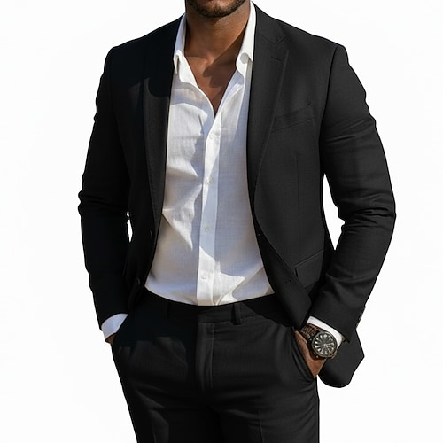 Abiti casual da uomo in lino per feste, revers a lancia, blu cielo, bianco, rosa, moda, quotidiano, formale, tinta unita, vestibilità su misura, 2 pezzi, monopetto, due bottoni