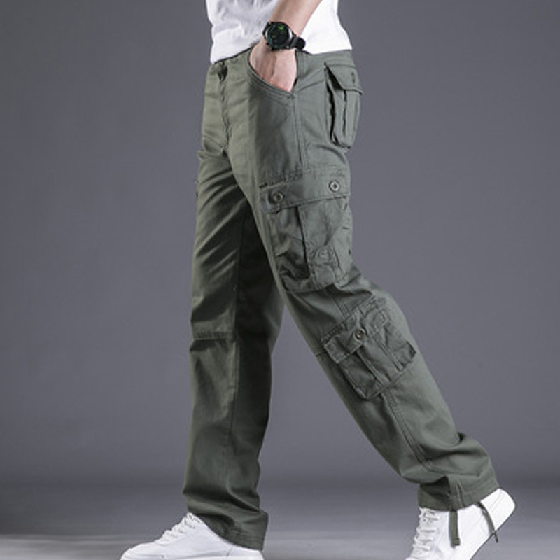 Men's Cargo Pants Trousers Leg Drawstring 8 Pocket Solid Color Comfort Outdoor Daily Streetwear Grass Green Black