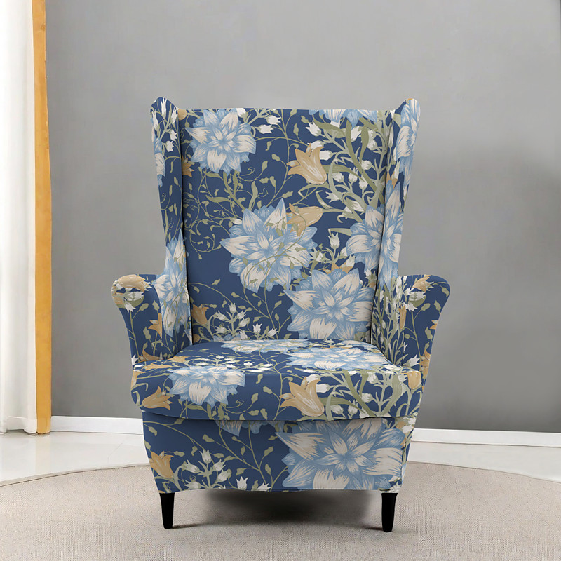 Wingback Chair Cover Floral Striped and Geometric Printed Polyester Slipcovers for Living Room Bedroom and Home Office