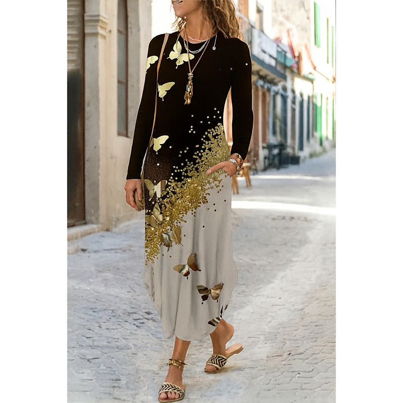Women's Midi Dress Sheath Dress Shift Dress Casual Daily Regular Fit Floral Graphic Paisley Long Sleeve Crew Neck Black Purple Green Spring Fall Winter Autumn