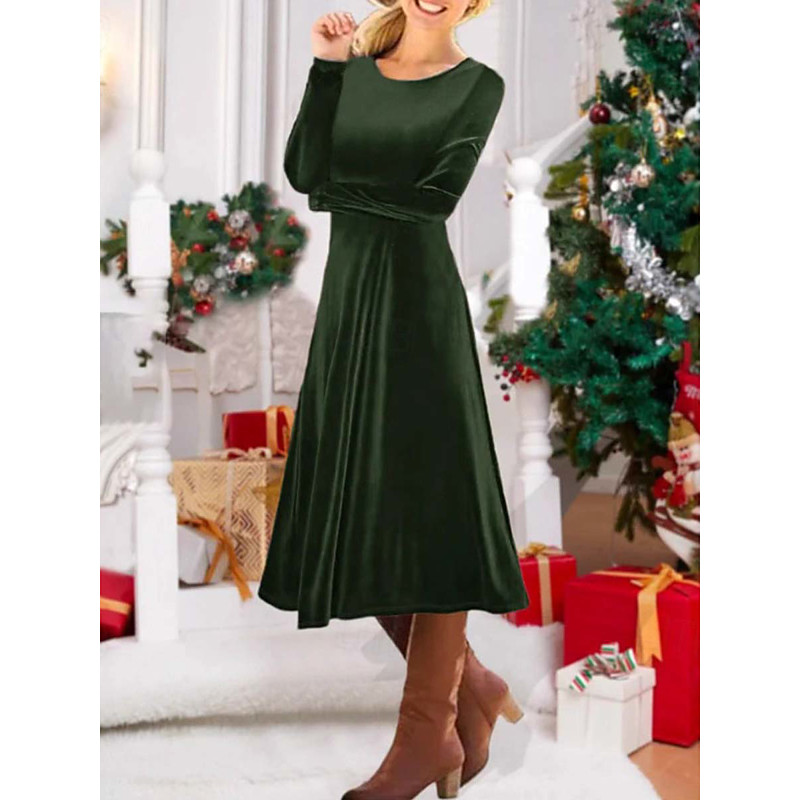 Christmas Women's Velvet Midi Dress Sheath Dress A Line Dress Fit And Flare Dress Elegant Party Boho Outdoor Party Daily Solid Color Long Sleeve Crew Neck Black Red Green Spring Fall Winter