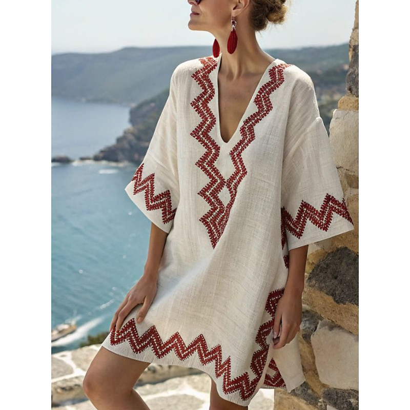 Women's Mini Dress Shift Dress Casual Outdoor Going out Loose Fit Floral Geometric Stripe Half Sleeve V Neck Blue White Dark Red Red Summer Spring