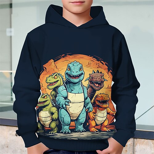 Jungen 3D Dinosaurier Kapuzensweatshirt Langarm Frühling Herbst Mode Streetwear Kinder 4-12 Jahre Mit Kapuze Outdoor Lässig Täglich Normale Passform