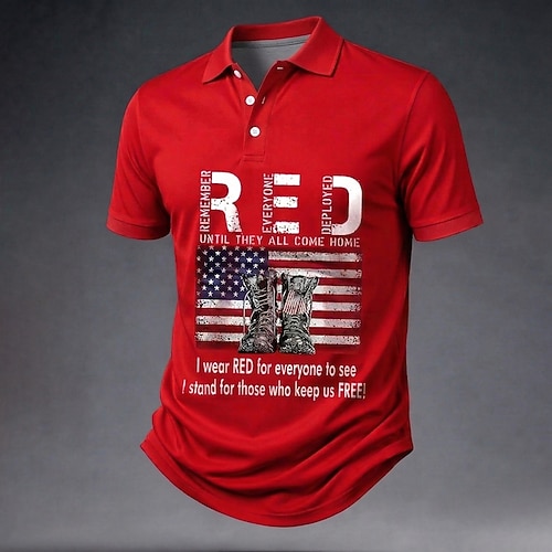 4. Juli 2026 250. Herren Amerikanische US-Flagge Poloshirts Kurzarm Polo-Shirts Hemden mit Kragen Lässig Outdoor Streetwear Athleisure Knöpfe Atmungsaktives Gewebe Sommer Frühling Blau Rote Armeegrün