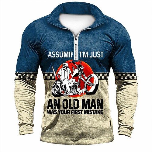 Herren Langarm Grafik-T-Shirt mit Biker-Zitat 'Annehmen ich bin nur ein alter Mann war dein erster Fehler' Lustiges Viertel-zip Shirt