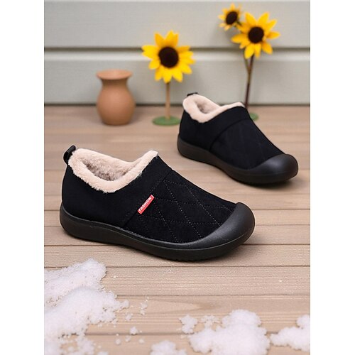 Kamelfarbene, warme, gesteppte Damen-Winterschuhe zum Hineinschlüpfen in weiter Passform – rutschfeste Outdoor-Schuhe für Schneetage, Reisen, Pendeln und den Alltag