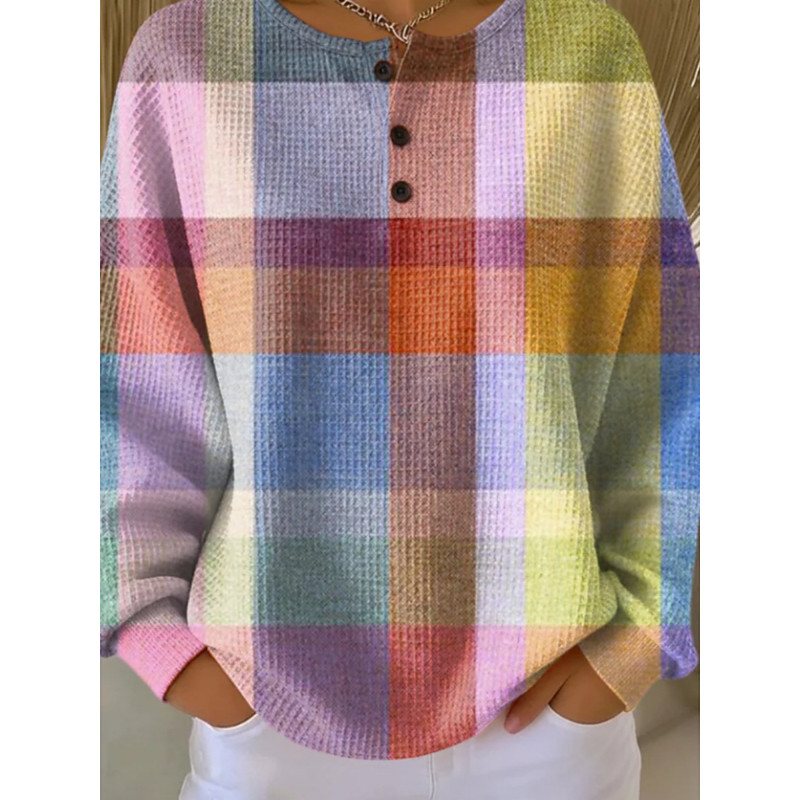 Women's Pullover Sweatshirt Graphic Plaid Streetwear Casual Long Sleeve Crew Neck Regular Tops Street Dailywear Print Blue Pink Purple Orange Green Spring Fall Winter