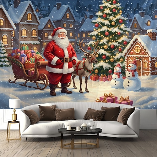 Babbo Natale di Natale arazzo con scena di pupazzo di neve, grande decorazione murale da appendere alla parete, tessuto per sfondo fotografico, arredamento per la casa per camera da letto, soggiorno