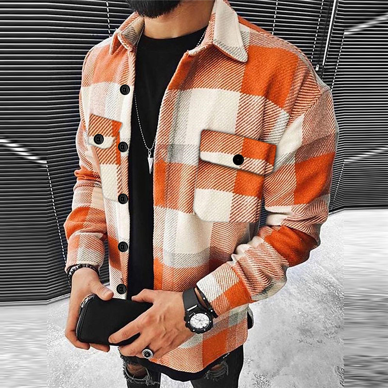 Men's Trucker Jacket Shirt Jacket Casual Jacket Shacket Outdoor Daily Wear Warm Fall Winter Plaid Fashion Streetwear Lapel Regular Black Wine Blue Orange Green Jacket