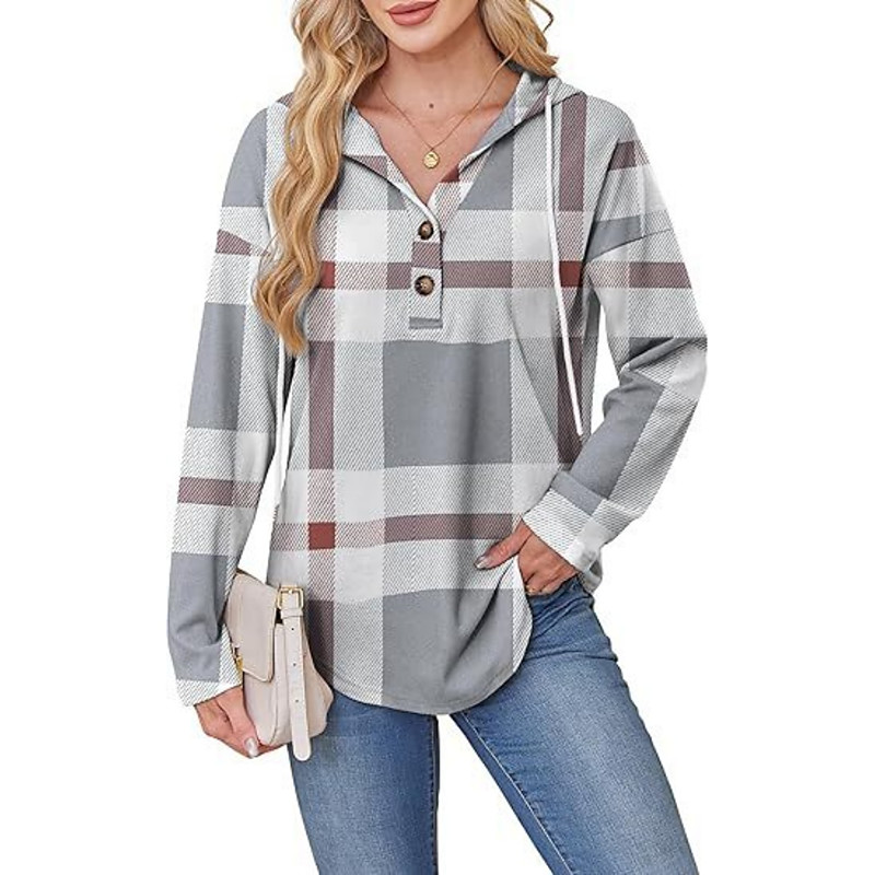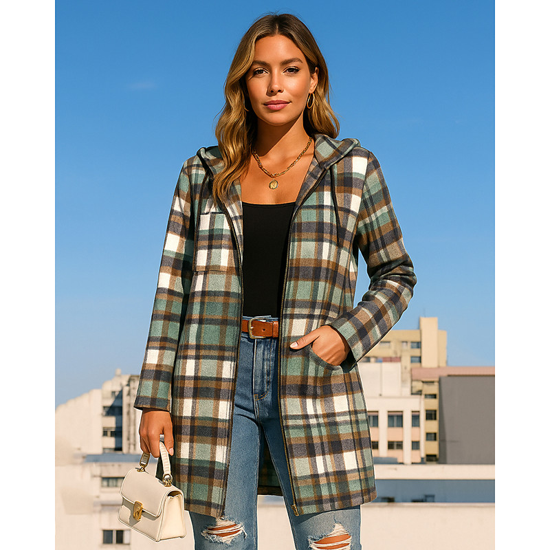 Women's Hoodie Jacket Zip Up Coat with Pockets Long Sleeve Top Athleisure Fall Plaid Checkered Windproof Hiking Outdoor Travel Sportswear Activewear Red Green Khaki