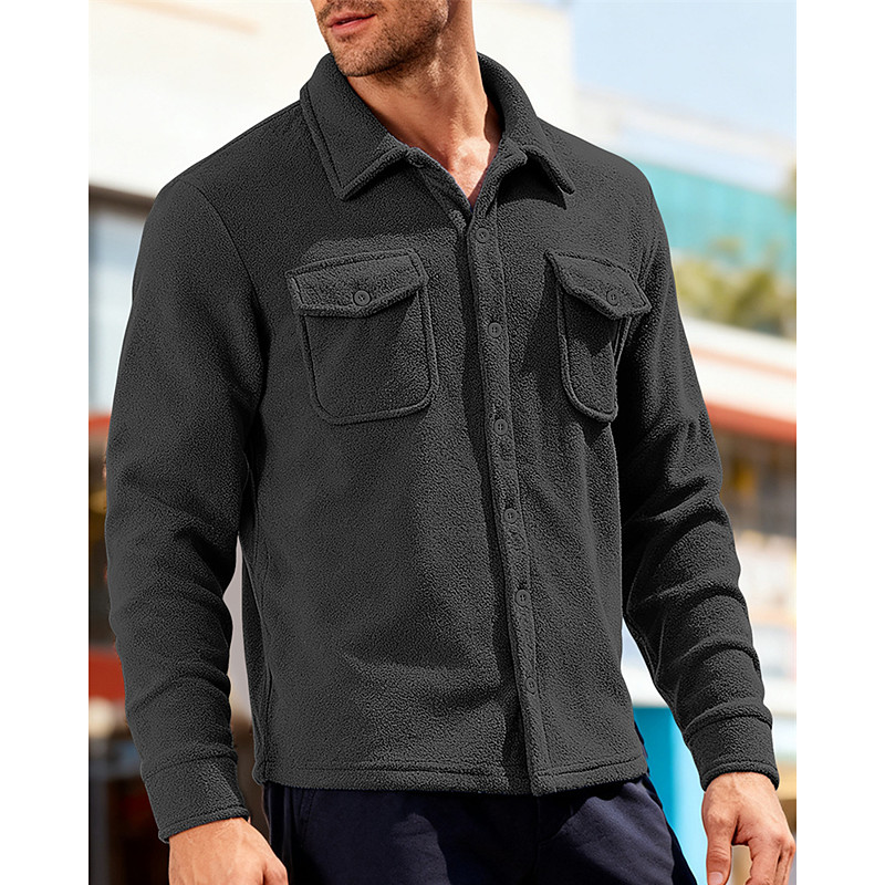 Men's Shirt Shirt Jacket Winter Jacket Plaid Vacation Daily Wear Black Navy Blue Royal Blue Army Green Long Sleeve Lapel Fall Winter Clothing Apparel Pocket