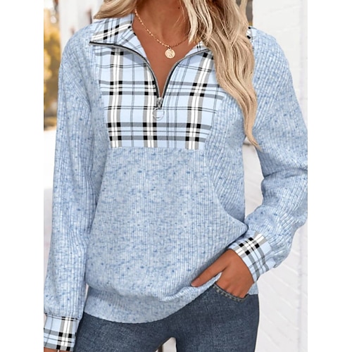 Per donna Maglietta Grafico Plaid Fiocco di neve Vintage Moda Elegante Manica Lunga Girocollo Top Regolari Quotidiano Cerniera Stampato Blu Rosso Viola Verde Primavera Autunno Inverno