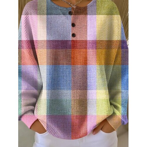 Per donna Felpa Pullover Grafico Plaid Streetwear Casual Manica Lunga Girocollo Top Regolari Streetwear Abbigliamento Quotidiano Stampato Blu Rosa Viola Arancione Verde Primavera Autunno Inverno