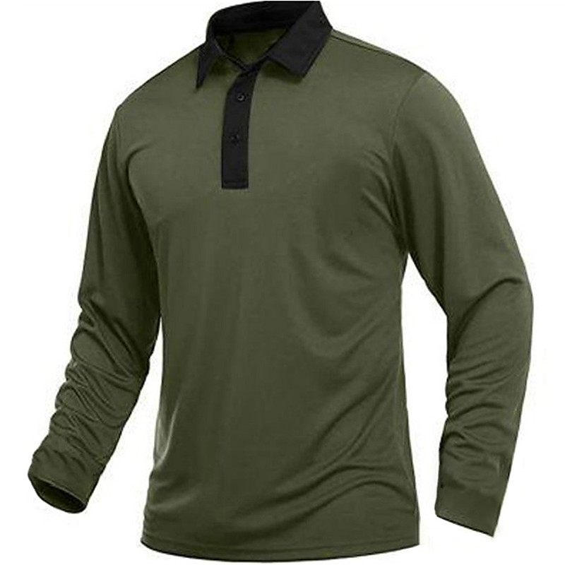 Men's Polo Shirt Golf Shirt Casual Daily Polo Collar Classic Long Sleeve Sports Fashion Solid Color Button Front Button-Down Spring Fall Regular Fit Black Blue Green Gray Polo Shirt