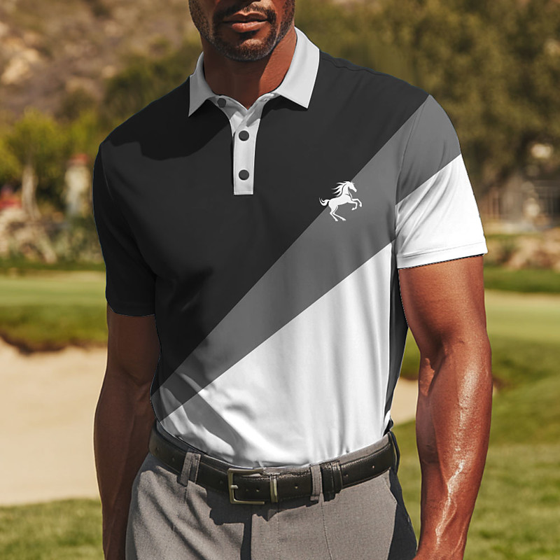 Men's Golf Line Polo Sports Polo Shirts Short Sleeve Polo Shirts Collared Shirts Sportswear Casual Athleisure Buttons Summer Yellow Red Sky Blue