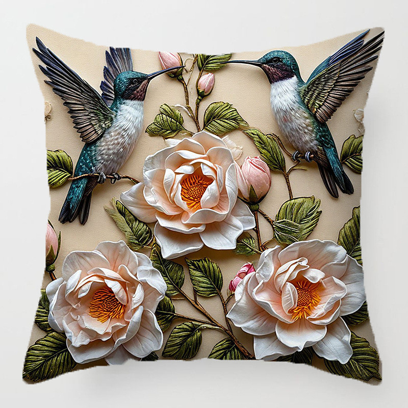 Floral Embroidery Style 2D Flat Print Decorative Pillow Cover Soft Short Plush Cushion Case with Faux embroidery for Sofa Bedroom Living Room Home Decor