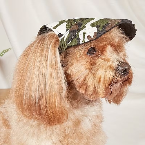 Niedliche Baseballkappe im Tarnmuster für Golden Retriever, Corgis und Pudel. Erhältlich in den Größen S, M und L. Verstellbarer Riemen, offene Ohren, UV-Schutz.
