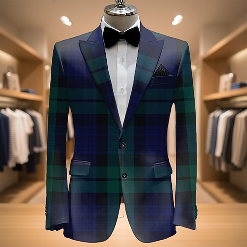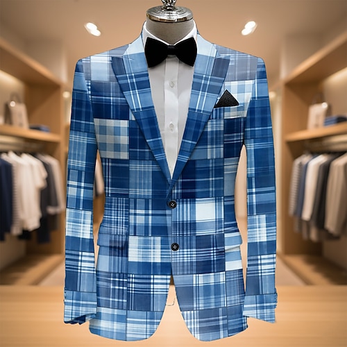 Per uomo Plaid Giacca blazer Cappotto Di tendenza Confortevole Traspirante Artistico Casual Quotidiano Abbigliamento da sera Tasca Stampa 3D Bottoni Tutte le stagioni Dentellato Manica Lunga Blu