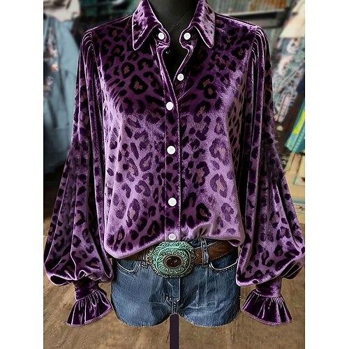 Per donna Camicia da lavoro Floreale Grafico Elegante Essenziale Casual Manica Lunga Colletto a Camicia Top Regolari Lavoro Abbigliamento da sera Quotidiano Bianco Rosso Viola Oro Grigio Estate