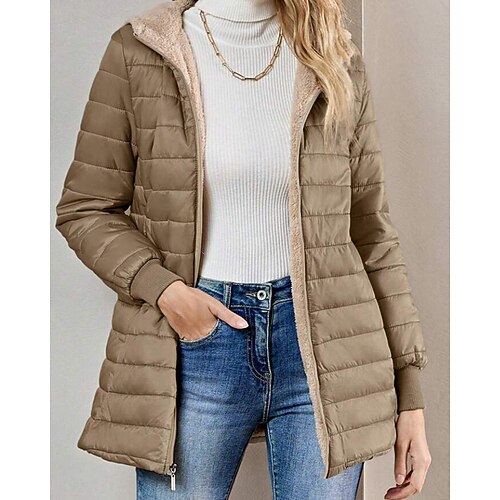 Per donna Giacca in Pile Giacca Sherpa Confortevole Traspirante Cerniera Tasca Casual Semplice Vacanza Streetwear Casuale Abbigliamento quotidiano Cerniera Regolare Con Cappuccio Vestibilità regolare