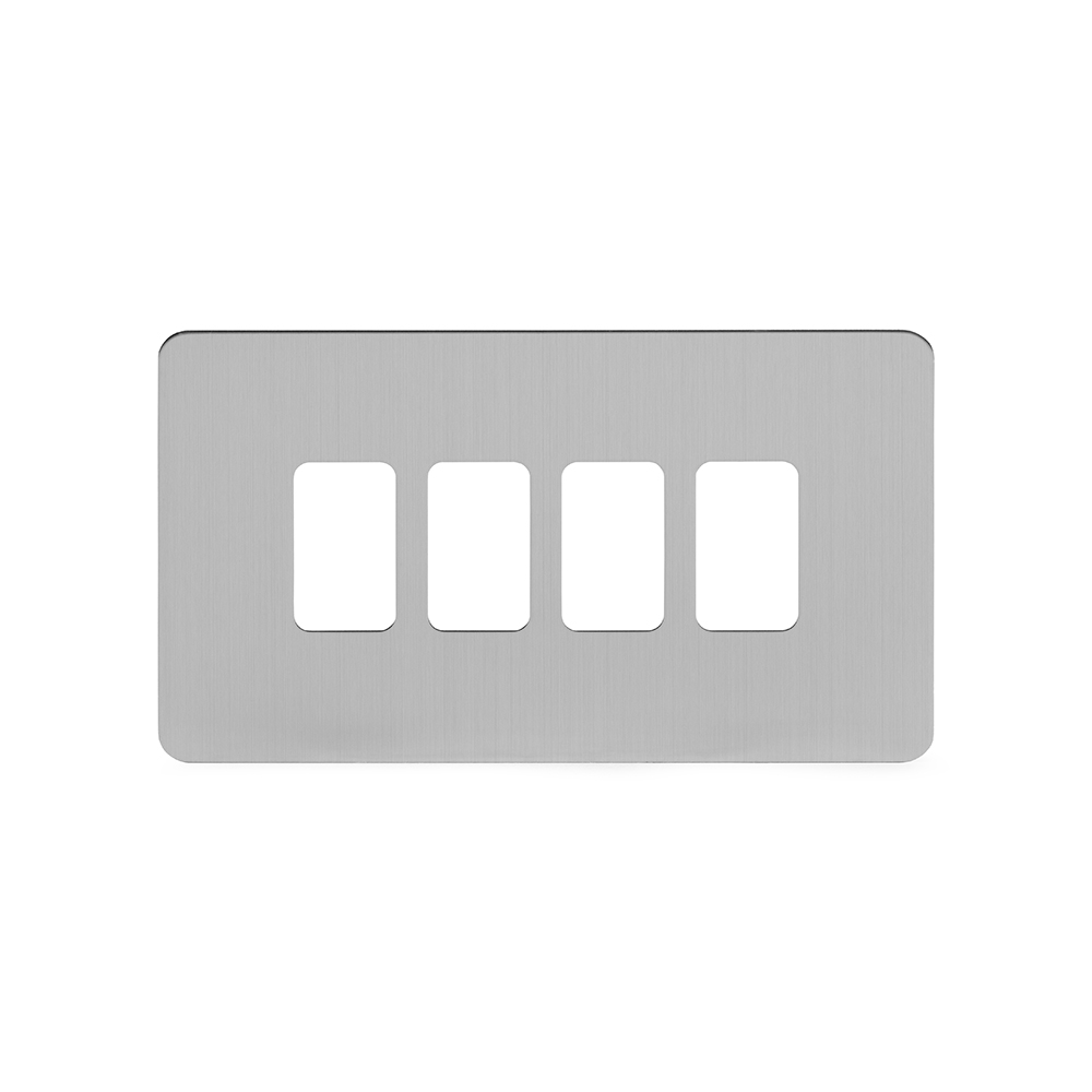 Soho Lighting Brushed Chrome Flat Plate 4 Gang RM Rectangular Module Grid Switch Plate