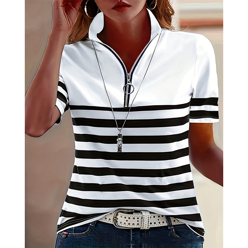 Women's T Shirt Summer Tops Graphic Geometric Striped Elegant Fashion Classic Short Sleeve High Neck Regular Tops Daily Going out Weekend Patchwork Quarter Zip Blue Black White Red Green Summer Spring