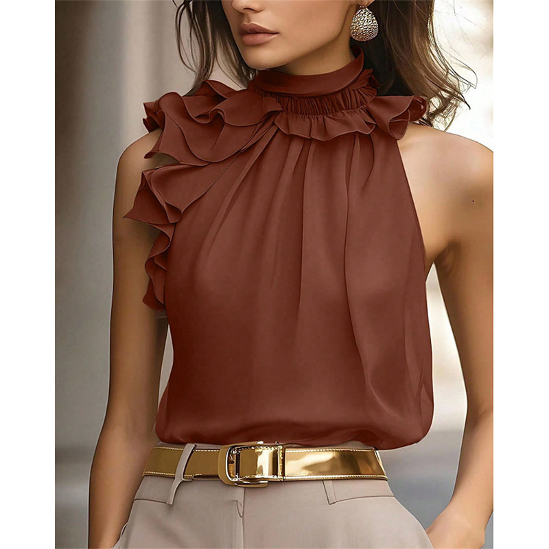 Women's Summer Tops Blouse Dressy Tops Solid Color Plain Elegant Vintage Cute Sleeveless Halter Neck Regular Tops Daily Work Holiday Ruched Ruffle Patchwork Black Red Brown Apricot Summer Spring