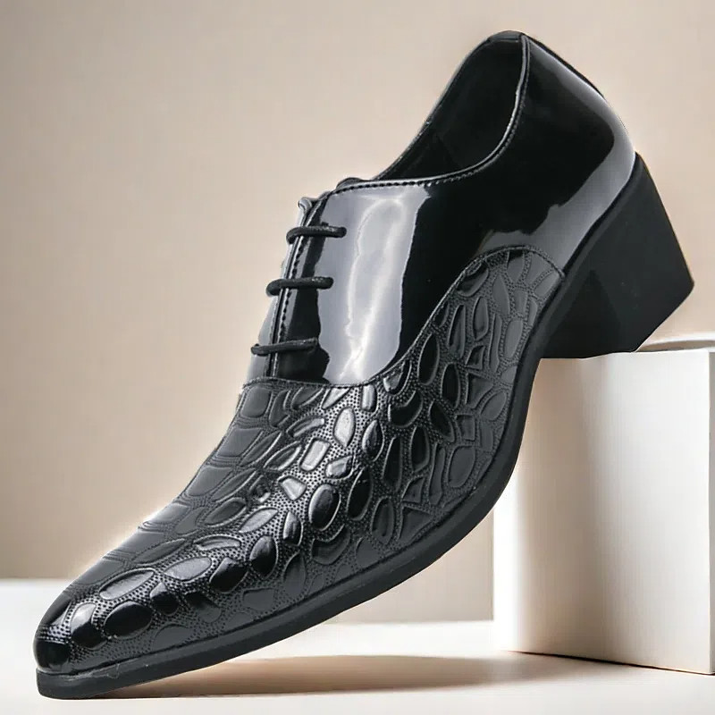 Men's Oxford Shoes - Metallic Patent Leather with Stone Texture Embossing, Elegant Formal Footwear for Men, Perfect for Weddings, Business Special Occasions