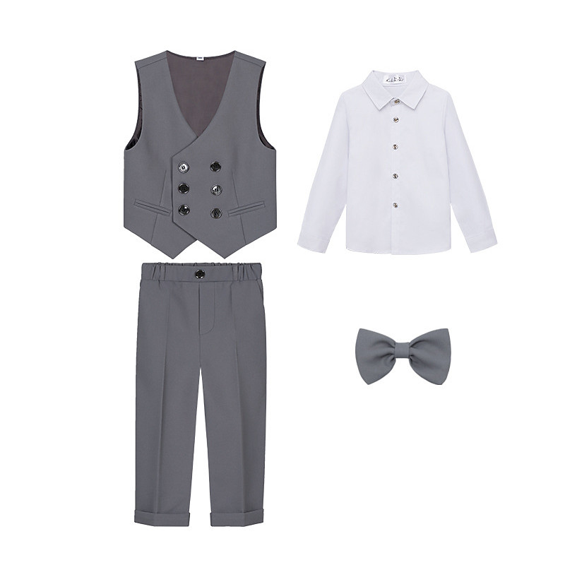 6 Pieces Kids Boys Suit Blazer Outfit Solid Color Long Sleeve Button Set Formal Cool Fall Winter 7-13 Years Gray 5-piece set (jacket vest trousers bow tie Blue 6-piece set (shirt jacket