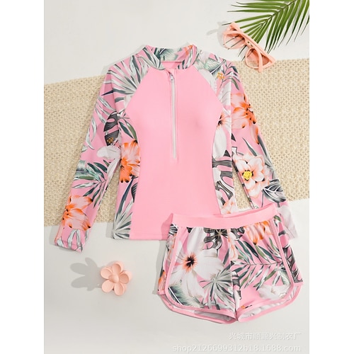 Bambini Ragazze Costume da bagno All'aperto Spiaggia Grafico Foglia Vacanza Tropicale Sport Costumi da bagno Dai 4 anni in su Estate Blu Nero