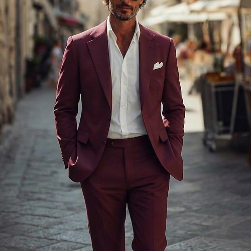 Uomo Abiti da sposa Casuale Affari Nero Borgogna Estate Tuta Bavero classico Moda Stile da Strada Tinta unita Vestibilità su misura 2 pezzi Monopetto Due Bottoni