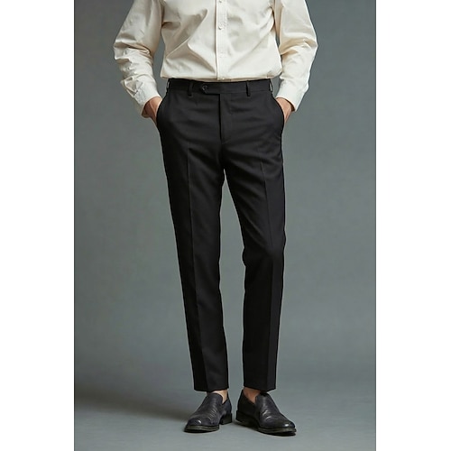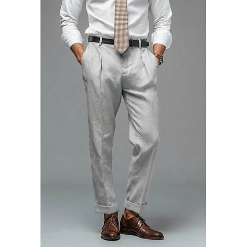 Uomo Cotone Lino Pantaloni Eleganti Affari Ufficio Carriera Leggero Classico Formale Nero Grigio chiaro Primavera Estate Pantaloni Tinta unica Vestibilità su misura Lungo Inelastico