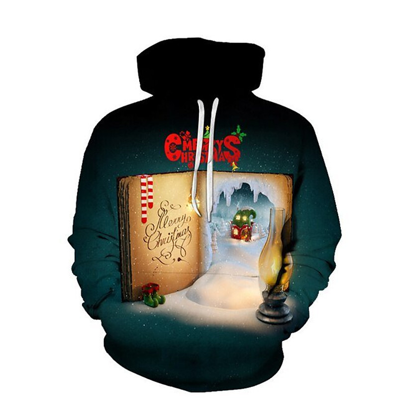 Christmas Men's Funny Christmas 3D Hoodies Pullover Green / Red Green Black Red Navy Blue Hooded Graphic Prints Beer Ugly Print Daily Sports 3D Print