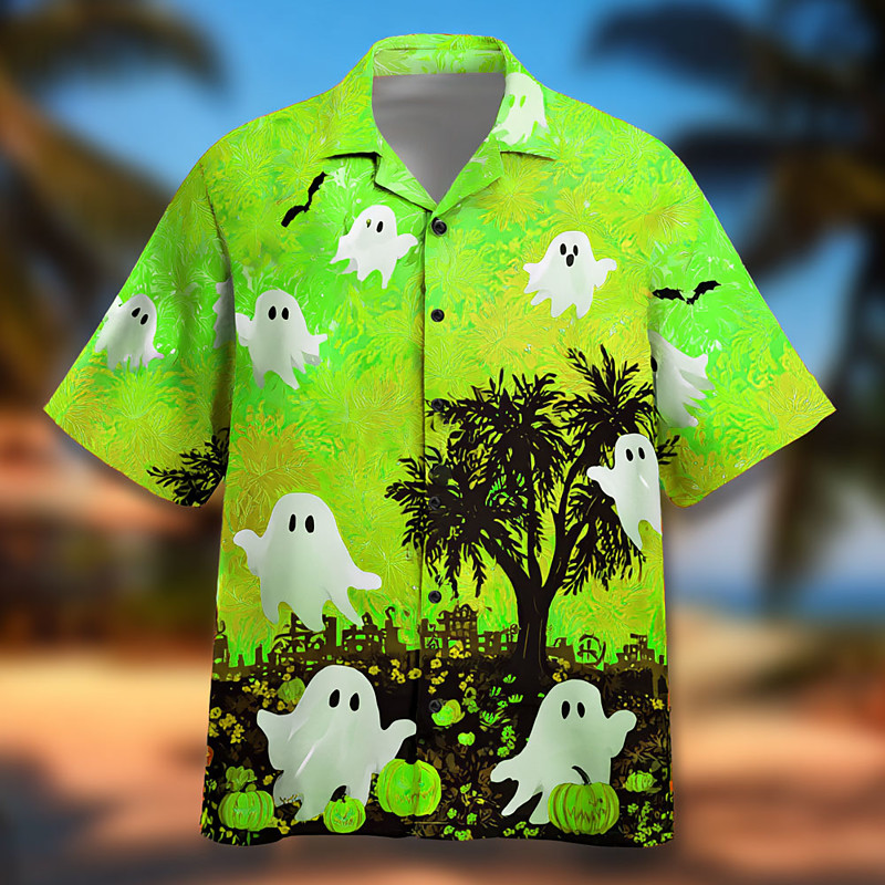 Halloween Men's Pumpkin Ghost Shirt Cuban Collar Shirt Button Up Shirt Short Sleeve Dark Punk Gothic Style Holiday Streetwear Summer Spring Camp Collar Shirt 3D Print Yellow Blue Orange Green