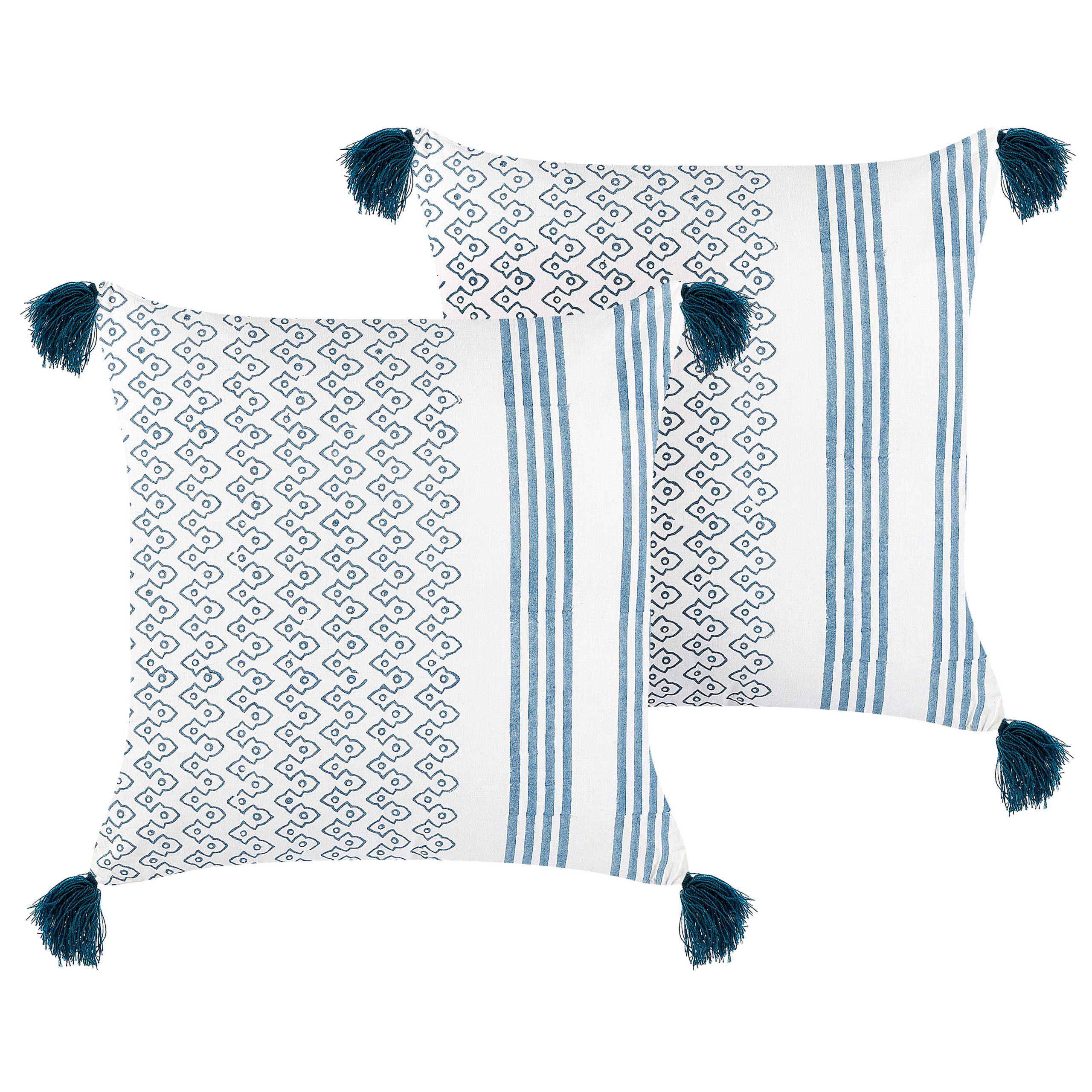Koristetyynysetti 2 kpl TILIA puuvilla 45 x 45 cm Sininen Geometrinen kuvio