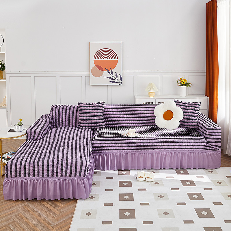 Skirt Hem Style Elastic Jacquard Fabric Stretch Sofa Cover Couch Cover Sectional L Shape Sofa Slipcover Corner Case for Living Room Sofa Protector Anti Slip Washable Dustproof 1 2 3 4 Seat