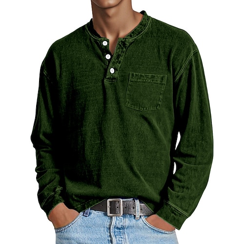 Per uomo Maglia Henley Camicia 100% cotone lavaggio acido Maglietta Manica Lunga Semplice Vintage Retrò Vintage Casual Stile Vintage Lavato Henley Casuale Primavera Autunno Tutte le stagioni Nero