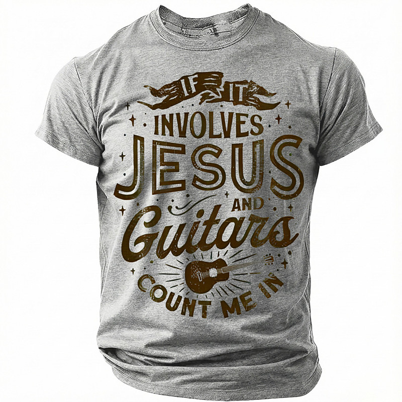 If It Involves Jesus And Guitars Count Me In T Shirt Christian Guitarist Gift Worship Leader Music Lover Faith Graphic Grey Tee Men Clothing Apparel S M L XL XXL XXXL