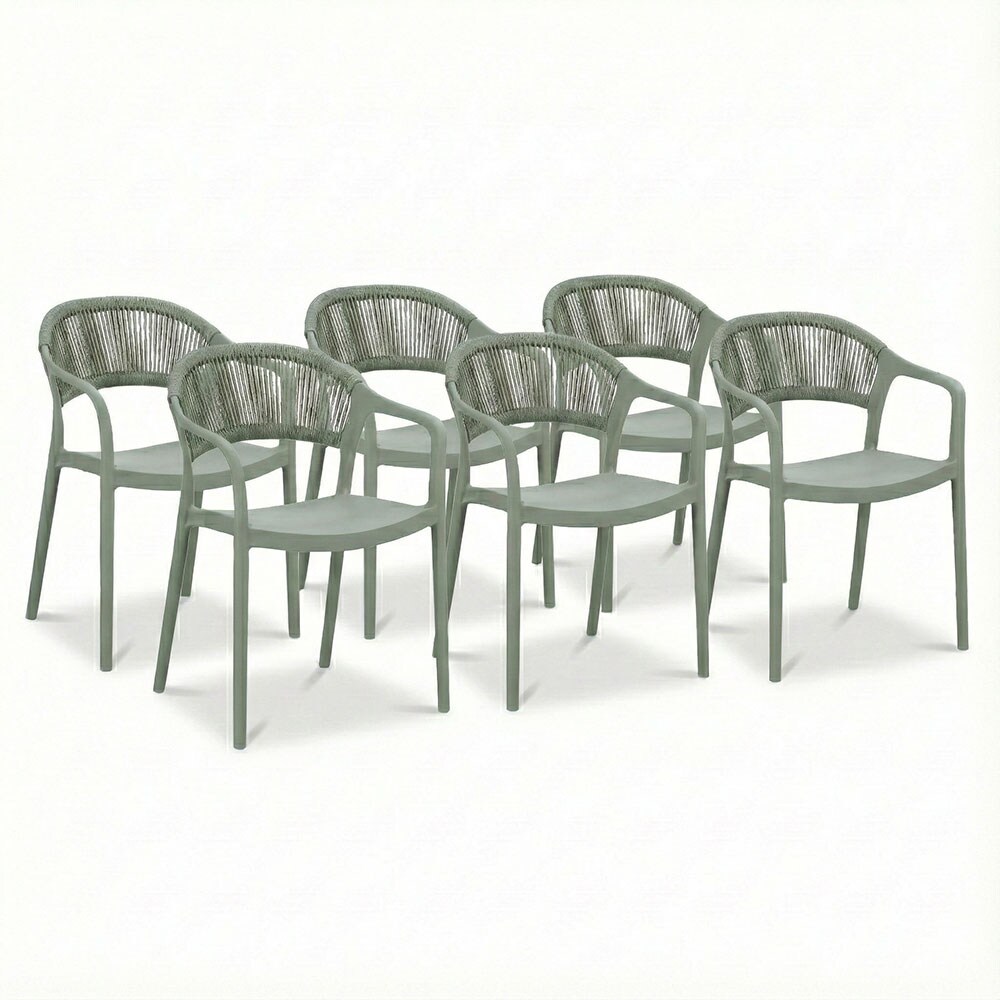 RATTATAN Set aus 6 Stühlen aus Polypropylen mit Kordelgeflecht, elegant, widerstandsfähig, stapelbar, für Garten, Balkon, Bars, Restaurants JOLANDA/Salbeigrün