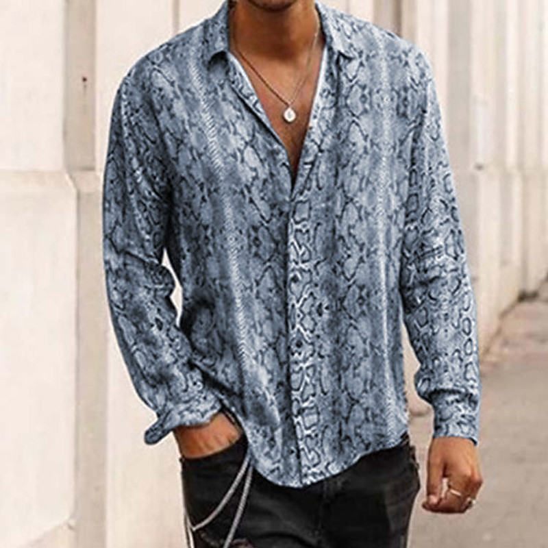 Men's Snake Print Shirt Aloha Shirt Long Sleeve Vintage Fashion Designer Outdoor Casual Daily Spring Fall Collar Button-Down Blue Green Gray