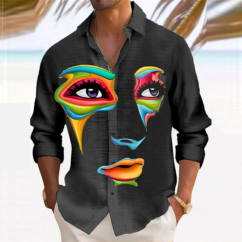 Men's Abstract Shirt Button Up Shirt Long Sleeve Abstract Daily Wear Going out Weekend Fall Winter Turndown Print Button-Down Black Blue Rainbow