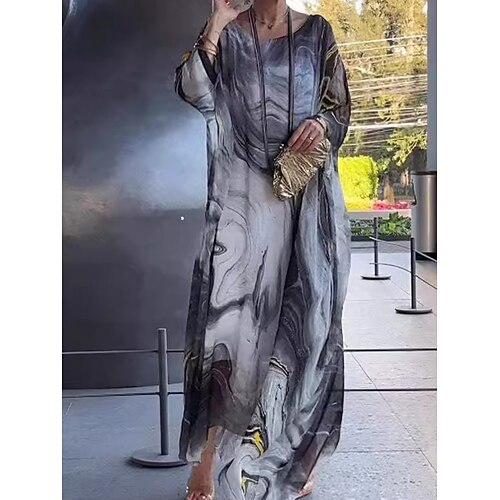 Per donna Abito maxi Vestito Estivo Abito a trapezio Casual Spiaggia Ferie Vestibilità comoda Ombre Grafico Geometrico Manica Lunga Scollo a V Viola Verde Grigio Estate Primavera Autunno