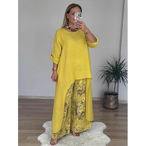 Per donna Set di Pantaloni Bolero Top Manica Lunga Girocollo Floreale Grafico Stampato Moda Streetwear Casuale Quotidiano All'aperto Bianco Giallo Rosa Estate Vestibilità comoda